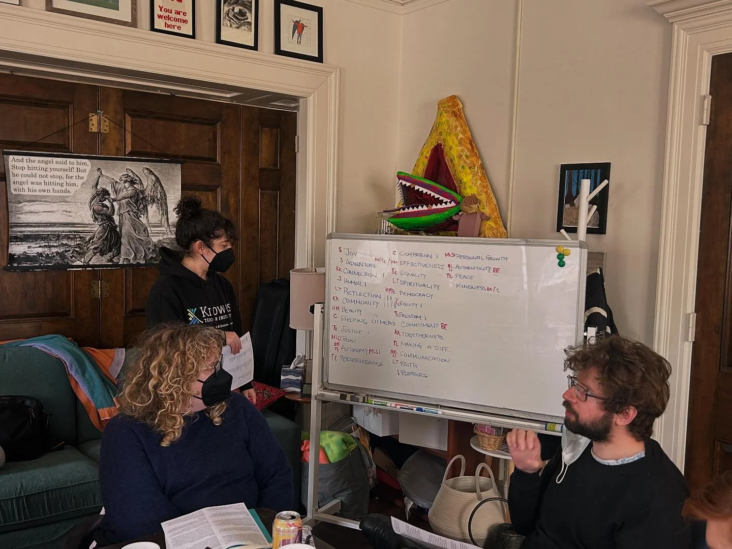 We are a growing community in Baltimore of Jews and our loved ones who study, pray, organize, and care for one another. We're building a synagogue-meets-community center-meets-beit midrash-meets-workers co-op. Hinenu ( הננו ) means "here we are" in Hebrew, and Shtiebl is Yiddish for "little house," a term for an intimate, cozy space where prayer and study meet. You are so welcome to explore, learn, build, and grow with us.